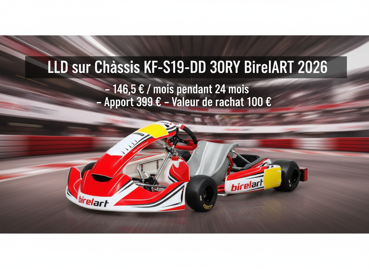 Le châssis KF – S19 – DD 30RY Birel ART 2026 représente l’évolution la plus aboutie de la marque pour les catégories à moteur mono-vitesse. Conçu pour offrir un équilibre optimal entre rigidité, précision et constance de performance, il s’adresse aux pilotes recherchant un produit fiable, compétitif et parfaitement adapté aux moteurs les plus utilisés du marché : IAME X30, KA100 et ROTAX.